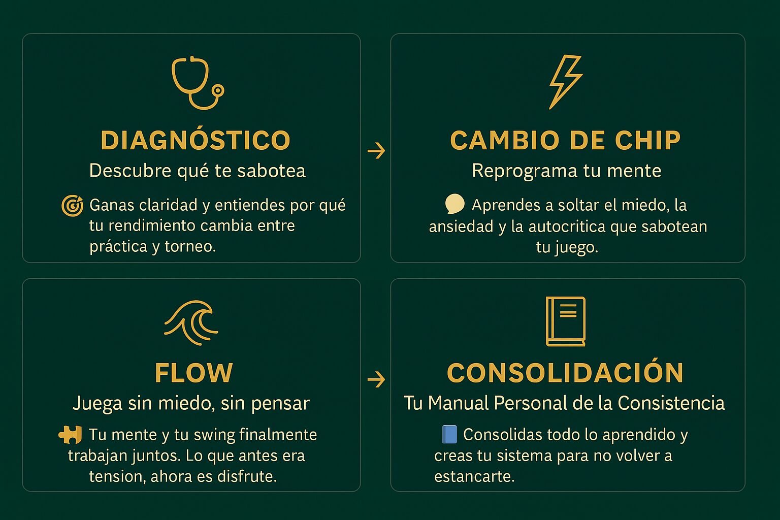 De golfista frustrado e irregular a jugador consistente y seguro en 12 semanas — sin tocar tu swing.