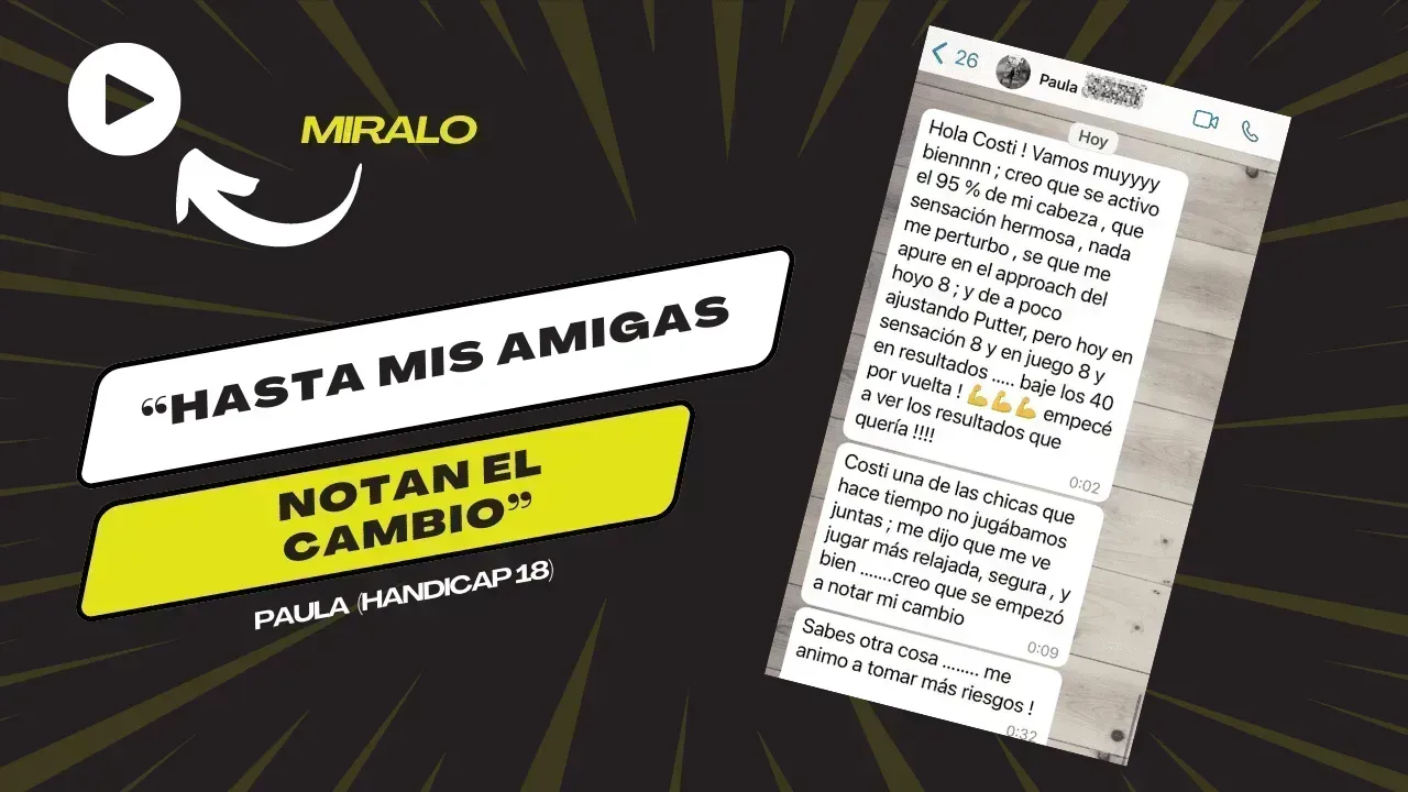 Gracias a trabajar en su mindset y emociones, logró de una vez tomar el control de sus maderas en el campo y en 2 meses, logró bajar su handicap de 16 a 12.